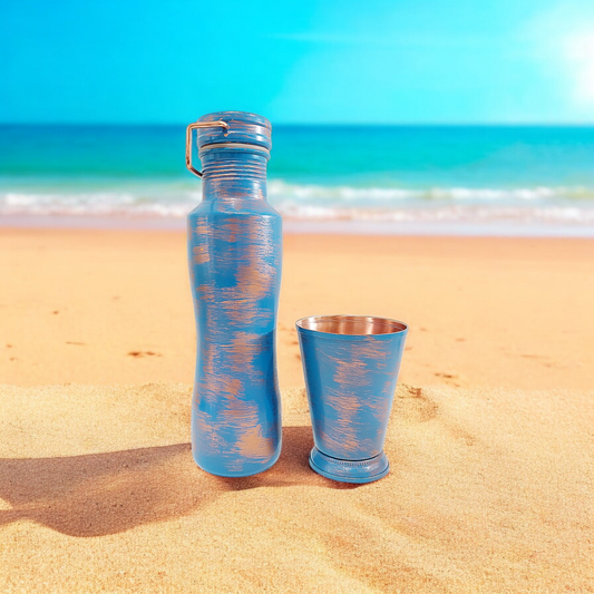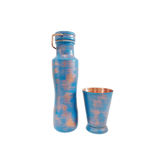 Blue Aura Duo Set - Premium Copper Bottle & Cup