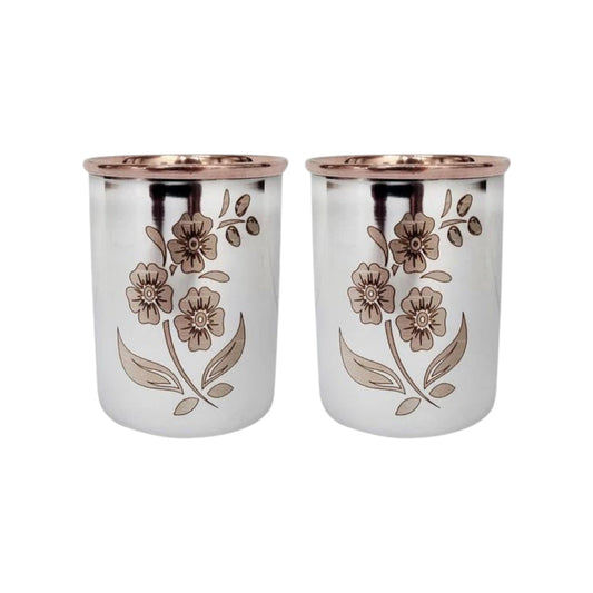 Steel-Finish Copper Cup – Floral Laser Design 300ml